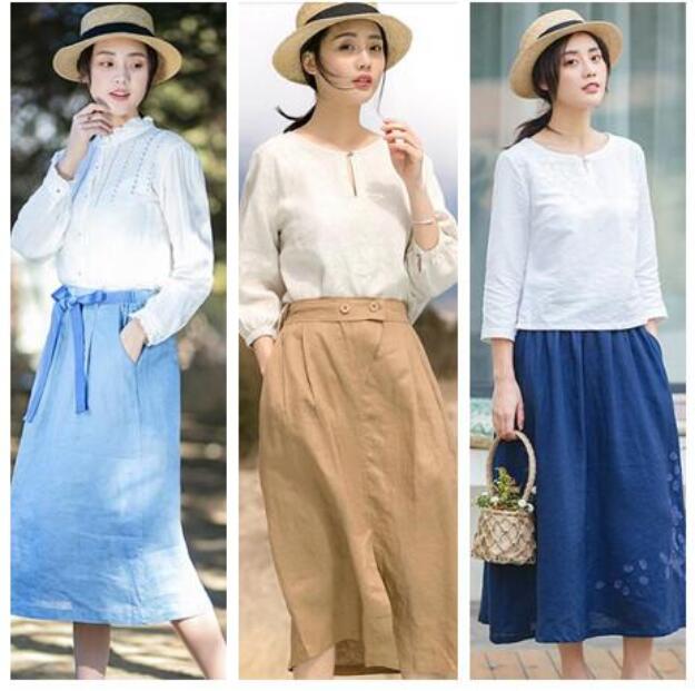 白色基础款的T恤,搭配亚麻或者棉麻的半身裙,穿着宽松随意,没有束缚感。衣服不一定是大牌,但是给人舒服自然的感觉。