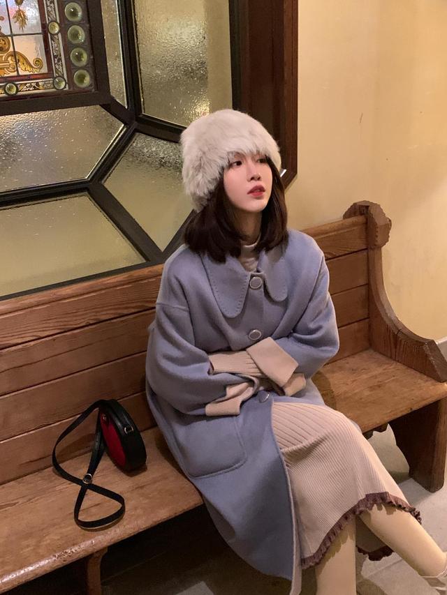 有些女人自带高级感,所以她们不会拘泥于简单而基础的黑白灰三色。女人要根据自己的肤色选择不同颜色的大衣,若是肤色偏白,整个人的身形又偏瘦,那么推荐蓝色系的大衣,它能够让人的气质更为清冷,同样优雅的魅力也不减。可以在里面搭配一件宽松的毛衣裙,适当的露出裙摆,塑造出令人舒适的色彩搭配,整个的身形虽然不会过于曼妙,但好在以气质取胜。