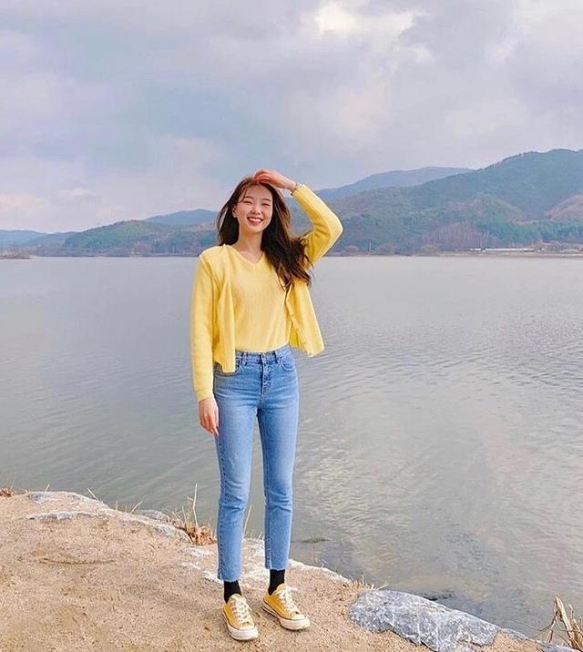 黄色系的帆布鞋看上去也很温柔,如果你想挑战其他的颜色,不妨试试这款。搭配一双黑色的袜子,瞬间就能跟你减龄,看上去也活力满满。