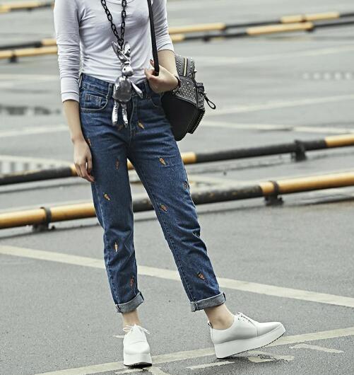 对于大部分的松糕鞋都是偏休闲运动风,因此建议各位美眉们可以选择一件简简单单的牛仔裤即可。大家之所以会选择这种厚底的款式一方面也是为了能够提升自己的身高,因此为了避免脚重头轻轻,小脚牛仔裤是非常不错的选择。无论是浅蓝色还是深蓝色都可以。而对于上半身则可以搭上一件无袖背心或者浅色系的长袖衣。