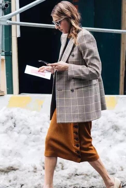 对于溜肩的小个子女生来说,柔顺面料没有型的小外套尽量少搭,以及没有领子的圆弧形的那种外套,更容易凸显出肩窄的特点,但我们可以通过叠穿的方式加宽我们的肩膀,比如叠穿外套,百褶半裙搭配格纹小外套,外面再套一件毛呢外套,则很好的掩饰了肩窄的特点,用皮带来修饰身高,瞬间显高又有气场。