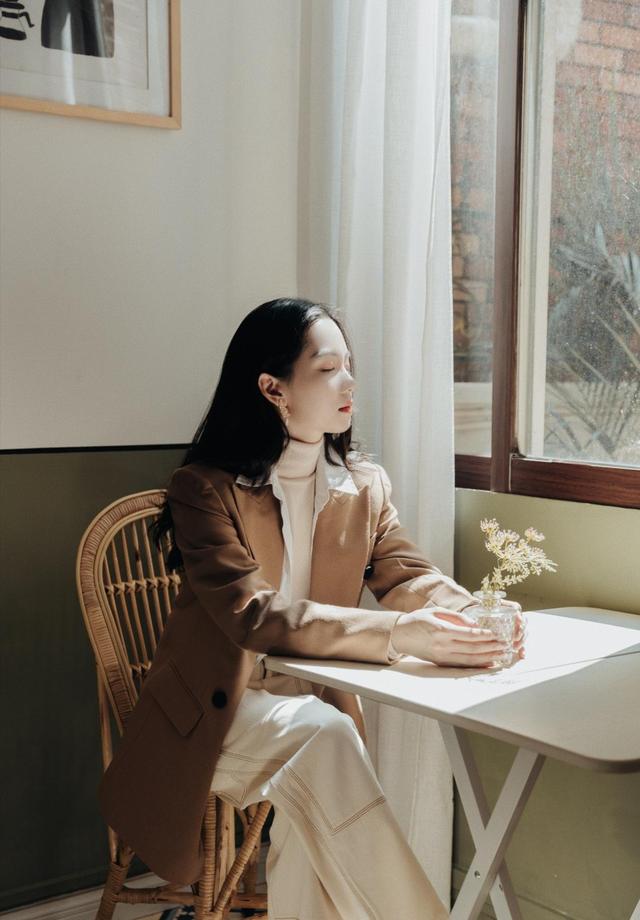 白色带来神圣的感觉,而棕色则带来温暖的视觉感受,图中的这款棕色西服外套也能够在早春的时候穿去上班,它让女性的气质更加温和。可以看出,它的版型是比较常规的类型,不会带来过于生硬的感受。可以内搭一件衬衫和一件高领打底衫,两款单品不需要过于厚重,选择轻薄的类型就可以了。