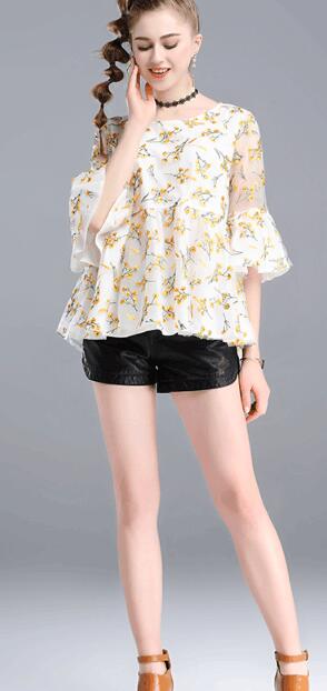 裙摆半透明设计,若隐若现的朦胧美。搭配黑色短裤下身消失法,让整个装扮显得非常的洋气时尚,又透着高贵典雅的女人气质。