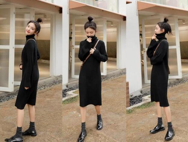 很百搭的一款黑色针织连衣裙,是今年流行的裙子款式之一,弹力感十足的针织材质,上身舒适又好看,还多了很多优雅感,高领的设计,更保暖更好看,刚到膝盖的长度,适合各种身材的女生,即便是小个子的女生也可以轻松驾驭,穿起来还优雅又显瘦,女装搭配。简单搭配一双黑色的鞋子,这么穿气质感满满的,还很美。全黑的连衣裙配什么鞋?