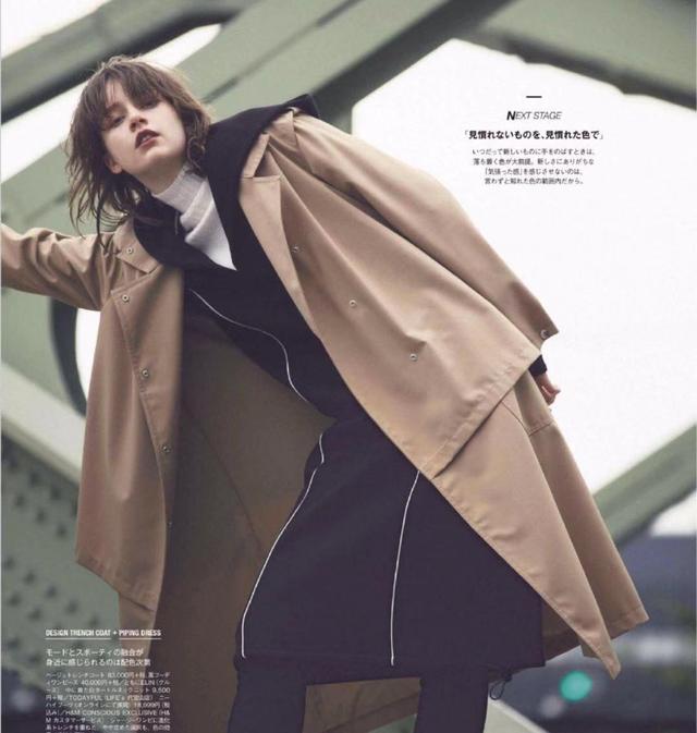 白色的针织高领毛衣,相当有质感。而搭配了一条黑色的连衣裙之后,黑白两色的对比顿时气质十足。棕色的风衣外套,设计的简洁而飘逸,无论是上班还是上街都是相当完美的单品。这一套很适合轻熟的优雅女性,能尽情展示自己的魅力,又随时都能让造型经典而耐看。