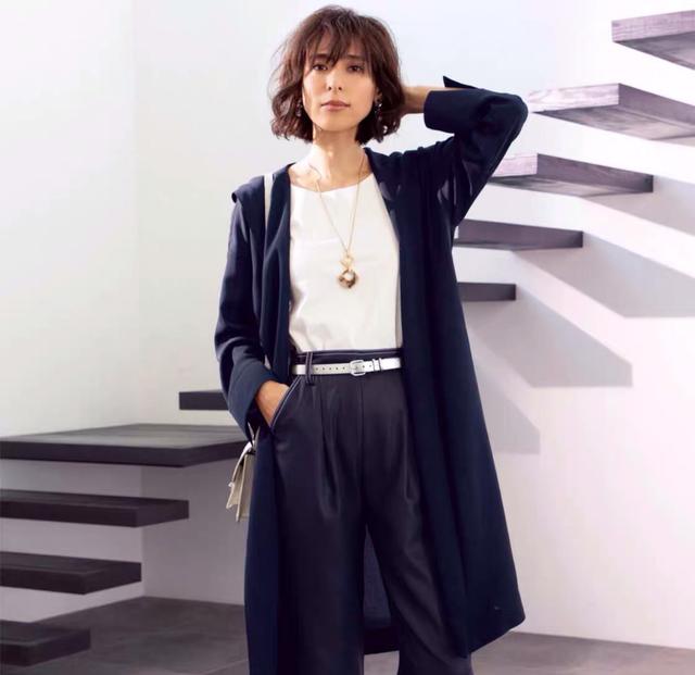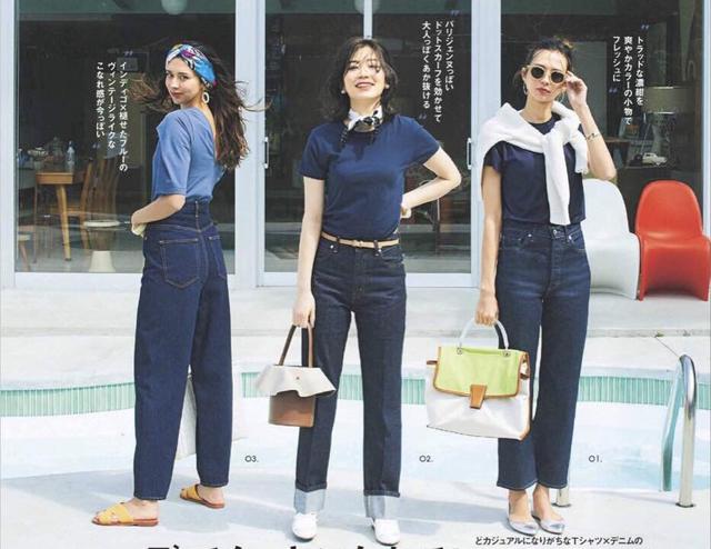 我们都知道深色的T恤有显瘦的效果,夏天如果穿黑色T恤觉得足够吸热,把它换成深蓝色,穿上去优雅又简洁,还比较适合职场的丽人。