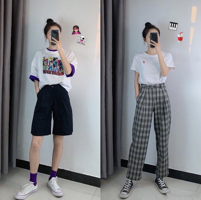 但对于年轻的女孩来说,想穿得不同一点。可以选择小图案或小logo的T恤,看上去更为更为精巧。白T恤和格纹的单品搭配,能穿出不一样的活力感。