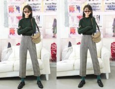 搭配1:经典的黑白格子休闲裤,是今年最流行的款式之一,稍微宽松的裤型,是最不挑腿型的,上身不仅时尚,还很显腿瘦的,上衣搭配豆绿色牛仔外套,还是短款的版型设计,所以这...