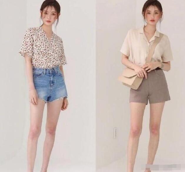 短裤确实是夏季最为常见的单品了,如果想要避免路人感的话上衣可以选择一些稍微偏女性化的单品,用上衣打造出整体的气质然后用短裤打造出优越的身材比例,前开襟的设计还是非常吸睛的。