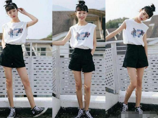无袖背心与一般的短袖、吊带都不同,它有着短袖的版型却有着吊带的长度属于一种将两者结合在一起的单品,既有着小女生的俏皮甜美又不乏职场丽人的成熟性感,搭配一件基础款短裤正好合适。