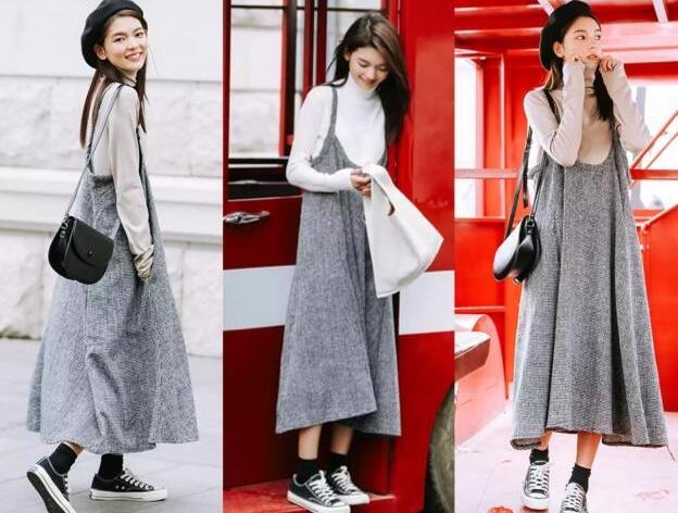 宽松设计的连衣裙,总给人一种慵懒随意感,适合那种大大咧咧的女生,上身是那么地随意自在,时尚的吊带裤款,不挑人穿,还蛮显瘦的,并且减龄效果超赞,高级的灰色,穿起来才更凸显气质,尤其是下半身肥胖的女生,这款是必get款了吧,完美没有见到下身的肉肉,超显瘦的,而前短后长的版型,把你脚踝的肌肤露出来,性感的同时,增加视觉上显高的效果,内搭各种毛衣,舒适更温柔,再配一双帆布鞋,时尚又好看,真的很美。