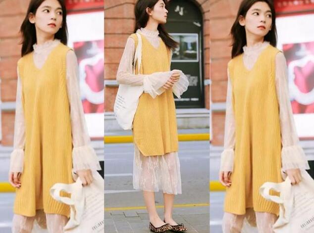 hin美的一款雪纺连衣裙,春天的第一条裙子,我一定要选这款白色的雪纺连衣裙,2019年也很流行的款式,上身显气质更美了,木耳领设计,配上镂空的碎花,淑女气质风格,甜到你的心里,还小性感满满的,袖子是喇叭袖型,俏皮又可爱的哦,外搭黄色背心毛衣裙,简直不要太好看了,春天早晚温差大的时候这样穿温柔舒适,时尚更好看!2019年春季标配的连衣裙,时尚又好看,谁穿谁美!春天女装连衣裙图片