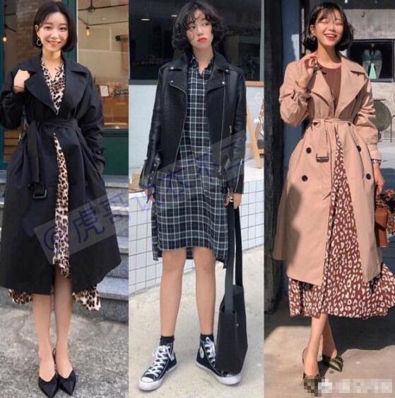 格纹还算是比较好搭,但是豹纹和碎花的驾驭难度还是非常高的,尤其是碎花,很容易穿成大妈色,豹纹也会穿出廉价感,这类花纹感比较强的连衣裙如果搭配一件纯色风衣或者是短夹克的话,就能瞬间改变气质,时尚又减龄,更是女人味十足!