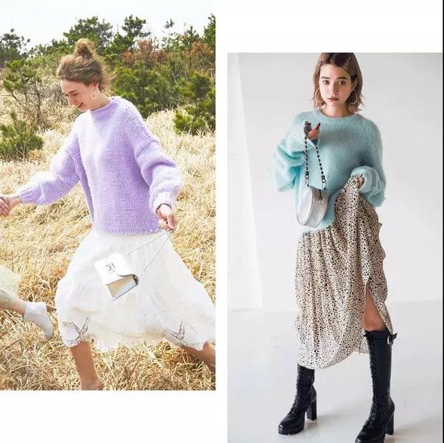 秋天的搭配怎么会少了毛衣呢,一件简单的毛衣就能在办公室吸引住男同事的目光~这两款毛衣都是纯色系,简单又大方。湖蓝色和浅紫色既青春活力又自带甜美气息,很适合软妹风。下半身搭配面料柔软一点的半裙最为合适,梦幻朦胧感很有feel。