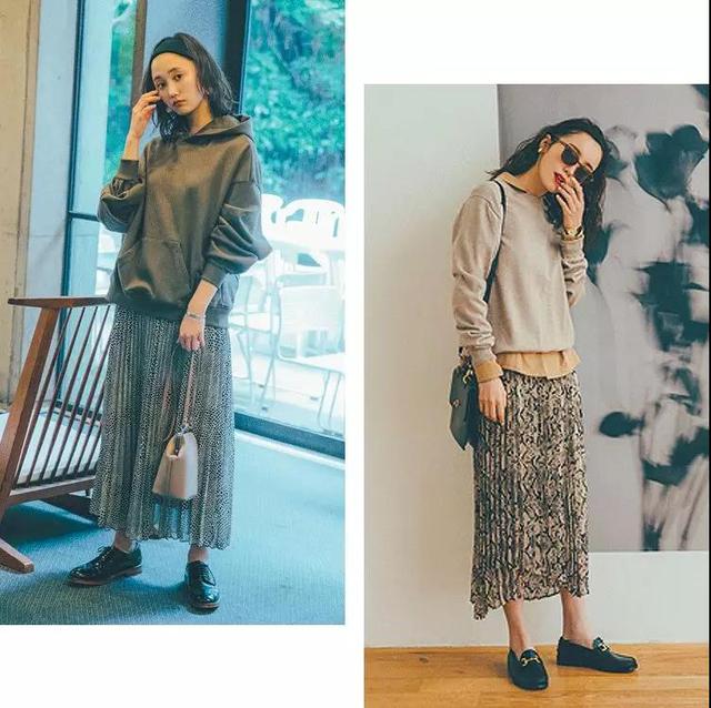 虽然说卫衣已经是烂大街的搭配了,但只要动了脑筋也能搭出新潮感~灰色卫衣作为卫衣届的霸主,高级感十足又耐看。左图连帽款满满的休闲感,搭配薄款百褶长裙,显瘦又很有仙女范。右图的卫衣色系就更亮了,内搭衬衫凸显文艺气息。