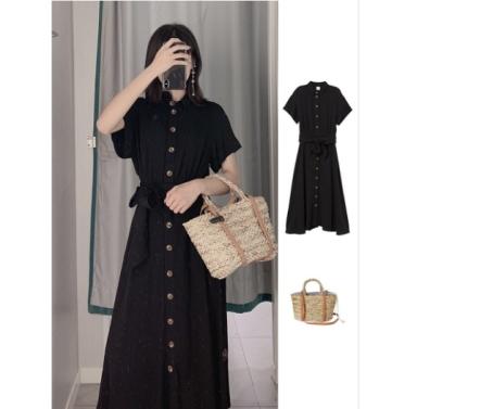 这一条裙子就比较有复古的感觉了,很显气质,但长度还是不太适合小个子的女生哦。非常的裤,而且穿裙子也是特别方便的,不用去考虑太多需要怎么样搭配,纯黑色显高又显瘦,腰间的绑带还拉长了整个人的比例呢。