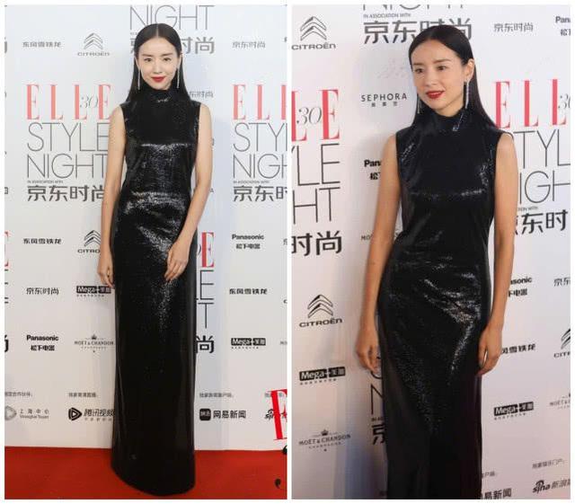 在七八十年代的时候,很多的女性都非常喜欢穿旗袍,特别是穿起旗袍非常的有气质。比如说那时候的张曼玉,穿起旗袍来,那是非常的有感觉。像之后一辈的人来说,陈数穿起旗袍来,也非常的有气质。本以为董洁身材娇小,不适合穿旗袍。可这一身黑色的旗袍穿上身,不仅仅显得身材修长,还提高了气质,可以说是华丽丽的变身。当然了,这和她的发型配饰也是有极大的关系的,耳环也为这套装扮加分了不少。