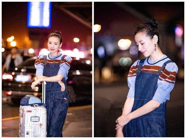 很多年轻的女孩子都喜欢穿背带牛仔裤,穿着不仅显得年轻,看起来还非常的靓丽。但是,像董洁这个年纪的人,一般没有气质,鲜少会穿背带裤。而董洁这一套的搭配,上衣打底里面挑选了灰色的针织衫,这让整体看起来柔和了不少,再加上她将头发挽起来了之后,显得既有邻家女孩子的气息,又有学生时期的叛逆。准确的说,是在青春的风格中,又多了一丝帅气的风格。
