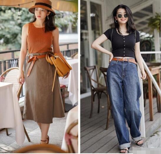 夏日穿着高领的针织衫可能不太合适,但这种无袖设计的上衣倒可以尝试一下,深棕色很显肤色,加上小宽松的版型,很适合30岁以上的女性,下身再来一条到小腿的半身裙就刚刚好,系上一条同色系的腰带,会让整个层次感瞬间鲜明起来,更显身姿挺拔有魅力,背上一款暗黄色包包,很是日常化!
