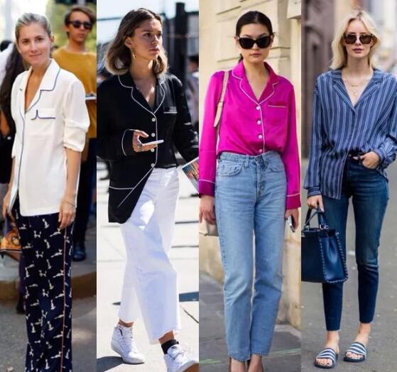 比如睡衣与衬衫的结合,也就是睡衣式衬衫,丝质或雪纺材质,极具垂坠感,而且透气清爽,你可以搭配同色系的阔腿裤或牛仔裤,仍然是随性休闲,而且更日常一些。睡衣式衬衫还可以与半身裙搭配,这样既能穿出睡衣的随性感,也不会过于随意,无论是约会还是逛街都很合适。