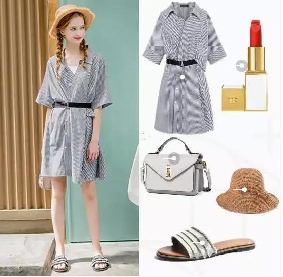 1.修身竖条纹,搭配衬衫版设计,减肥力MAX!气质翻领表现出成熟的魅力,大V领口,长颈线,搭配屋,脸型小。腰带的支撑使得街道不可能碰到衬衫,同时它也可以隐藏肉。