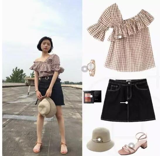复古的格子元素一直深受小仙女的喜爱。柔和的色彩展现了女孩们的甜美风格。褶边和无肩带肩部的小性感带有女孩独特的女性气质。风的小高跟鞋,在大街上的完美女孩。