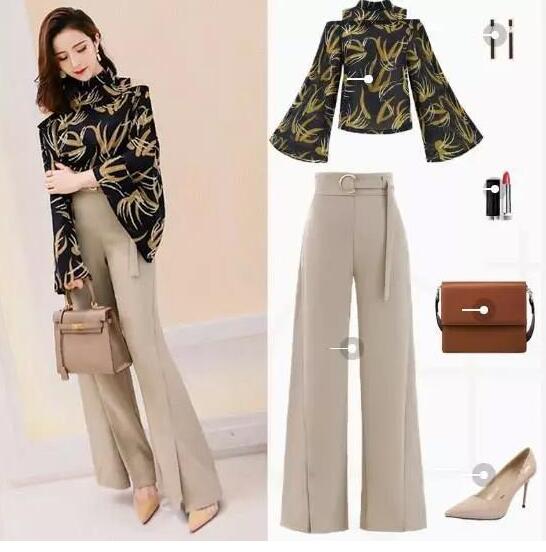 5.经典休闲白衬衫,领口表带设计工艺,更能展现女性的独特魅力。灯笼袖搭配宽松高腰喇叭裤,搭配尖头鞋和时尚链条袋,营造舒适的整体购物体验。2019时尚搭配春季