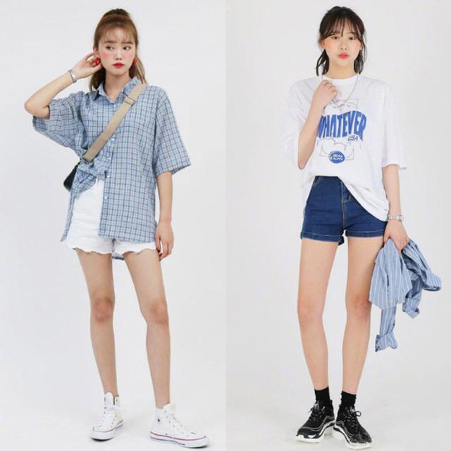 当然短裤也是20-28岁学女生必备的衣橱单品。白色休闲短裤采用波浪边纹设计,款式新颖独特,上面搭配一件宽松版型的中袖格纹衬衫,复古时尚,又充满青春活力的运动风。牛仔短裤是永不过时的时尚单品元素,上面搭配一件白色印花圆领中袖T恤,胸前精致的印花元素和活泼的印字元素相得益彰,更加减龄青春。手中拿一件蓝色条纹衬衫,穿脱方便,更显简约时尚。