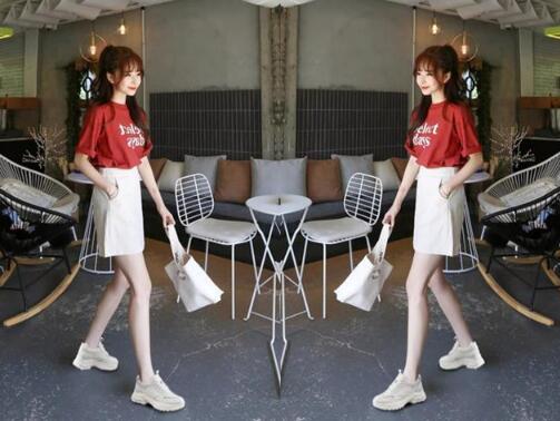 搭配3、夏天挑选这件酒红色T恤穿上身,距显白,距显气质的哦,个性的字母点缀,白色和酒红色撞在一起足够你造型时髦,不挑身材的宽松版型,穿起来才可以遮肉显瘦,下身是一条白色半身裙,高腰直筒的短裙型,展示出你一大部分的腿部肌肤,穿上就很显腿长,再外搭一双老爹鞋,超简单又好看的一款搭配,谁穿谁时髦,还超舒适。