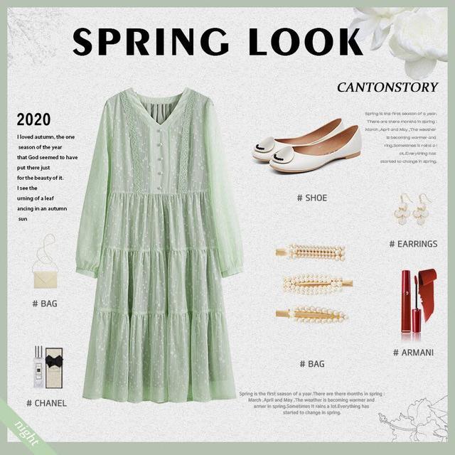 在挑选薄荷绿长裙的时候要挑选长袖的,下半身部分尽量如同蛋糕裙的设计一般,这样款式的裙子更适宜在春天穿着。淡淡的绿色看起来是那么的清新、清爽,而且这样的女人往往非常安静却不内向,仿佛心中自有主意。搭配一双白色的平底鞋,整个人显得无比清澈,一举一动看起来都恬静优雅,让人心生涟漪。