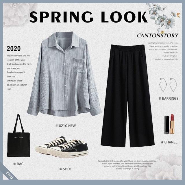 由于是春季的搭配,所以我们在选择衬衣和阔腿裤时要尽量选择质地轻柔的,男装搭配。给人以舒适感的面料。衬衣最好的选择浅色系的,像蓝色这样的温柔的颜色,而阔腿裤则选择黑色的,两者在颜色长形成一定的冲击,却在风格上和面料上保持了一致,是比较休闲的搭配,所以适合的人群也是没有局限性的!
