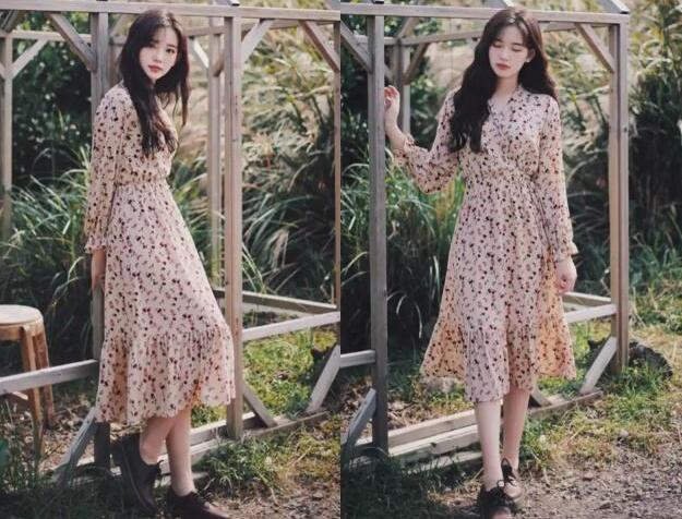 2、走在春天的季节里,让你感受到这个春天温暖的阳光,小碎花的设计显得大方得体又显气质,高腰的设计让你的腰间看起来足够的显气质,裙子的长度刚刚好在膝盖处的,衣领的纽扣复古又高级感,搭配上直发发型最好看了,女装搭配!再外搭一双平底鞋,怎么走都不会觉得脚累