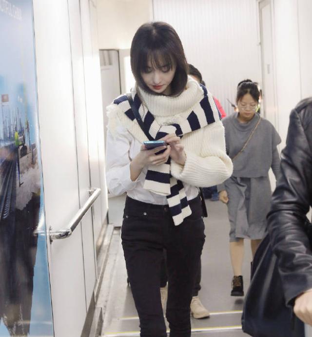 爽妹子真的瘦的让人心疼,不过好看也是真的的。这款白色高领毛衣让爽妹子的脸看起来更小了,楚楚可怜让人想要保护。宽松的领口更加有空气感。衬衫与毛衣的叠穿才是时尚的做法,轻盈又保暖,很考验人的身材哦。