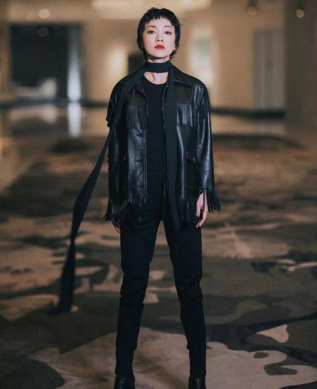 与格纹元素一样,皮革元素从去年或到了今年,皮革元素的单品总是自带一种帅气的感觉,这可能与它硬朗的质地有关系吧。小小只的郭采洁穿上黑色皮革元素外套,瞬间就拥有了强大的气场,流苏的设计让一身黑的穿搭限定不那么的沉闷。