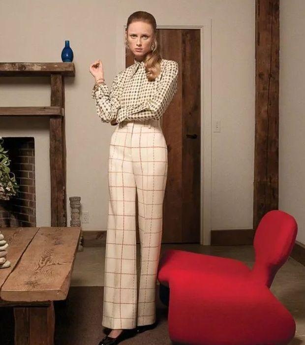 如果你觉得像格纹西装这种单品自己hold不住的话,那么不如入手一条大格纹的阔腿裤吧。它不但时髦而且遮肉,在冬天就算里面塞两条秋裤都没人看得出来,在初秋搭配上一件波点衬衫,整体显得复古又优雅。