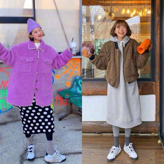 挑选一件亮紫色的羊羔绒中长款外套配上一条黑白波点,修身针织裙这样就能够展示出俏皮和可爱。选择一顶淡紫色的针织帽进行搭配,这样的你会更显年轻范展示出你的与众不同,配上一双运动鞋就能够凸显出活力满满了。当然了,喜欢简约风的女人们可以挑选一件灰色的长款卫衣裙,这样不仅能够使你看起来更显高,还能够展示出活泼,配上一双白色的运动鞋,也能够让你青春一整个冬天。