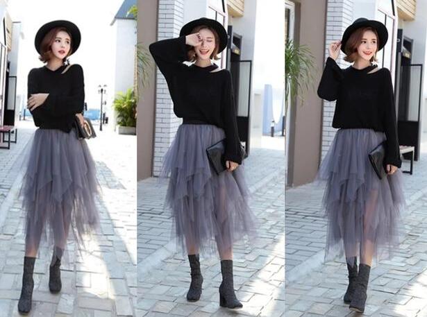 1、不管你是什么身材,我觉得这款松紧腰蓬蓬裙肯定适合你的了,松紧腰的设计,穿脱方便,活动自如,胖瘦皆可穿的一款,并且上身效果还很显瘦的哦,而不规则的薄纱设计,穿起来超显气质的,还优雅迷人,上衣配上一件黑色毛衣,谁穿都显瘦好看。