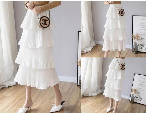 3、白色设计的半身裙,很仙+很美,又是不挑身材穿的A字裙型,所以简单穿起来就很显瘦好看,对于下半身肥胖的女生来说,简直不要太适合,裙身层叠的设计,瞬间提升造型的时髦感,并且层次感十足,搭配屋。优雅又时尚,上衣如果配上一件波点雪纺衫就更美了,又很有文艺风格。