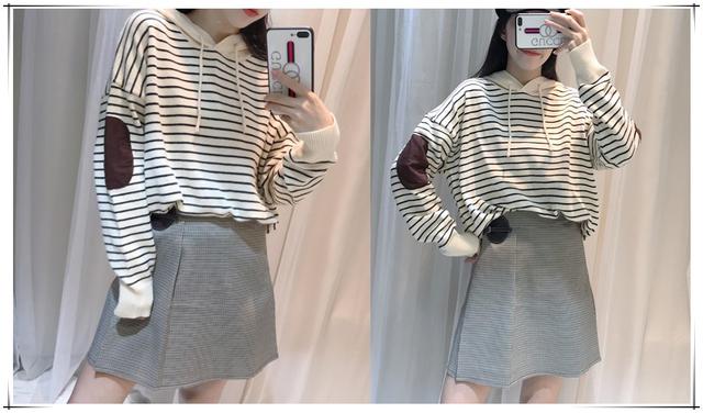条纹上衣宽松的版型,很好修身你腰部的肉肉,开叉的设计,愈加有时兴感,能够下身搭配上一条黑色的半身裙,轻松让你穿出清爽的气质,彰显出个性,让你回头率也是杠杠的。