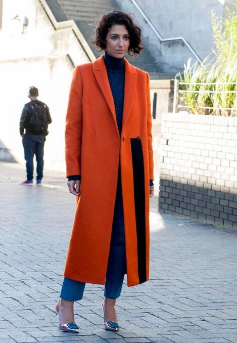可能比较年轻的女生穿起橘色的大衣会显得比较成熟,所以很多人不会选择橘色的大衣,但其实适当搭配一下也是会有小清新的感觉的,比如说前面所说的白色毛衣、衬衫搭配牛仔裤,这就是比较偏休闲的搭配,会显得年轻活泼。