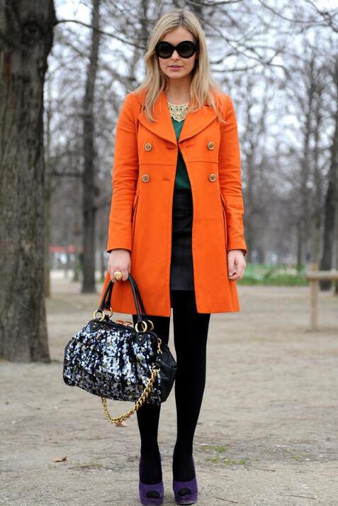 冬天穿丝袜的人不在少数,耐得住寒冷,美丽也冻人,但是可以选择比较厚的丝袜,现在有很多丝袜都是加绒加厚的,甚至可以抵御住北方的寒冷,所以放心选择。因为橘色属于深色系列,所以可以选择黑色的丝袜与它搭配,也比较符合整个冬天的格调,但是不一定浅色的就不好看,也可以穿一身浅色搭配橘色外套,成熟中略带小清新的感觉。