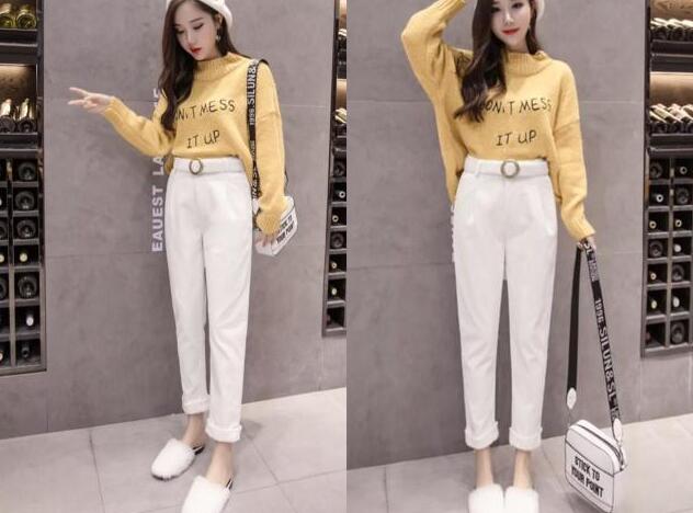 白色的休闲裤也是很多人喜欢的,穿上去简单大方,有种整洁大方的气质,百搭时尚又优雅,系腰带的设计显得干练大方,可以收腹平腹,遮肉显瘦,小脚的设计显得腿长腿细,搭配一双白色毛毛鞋,真心是舒服又好看,简直美太多了。