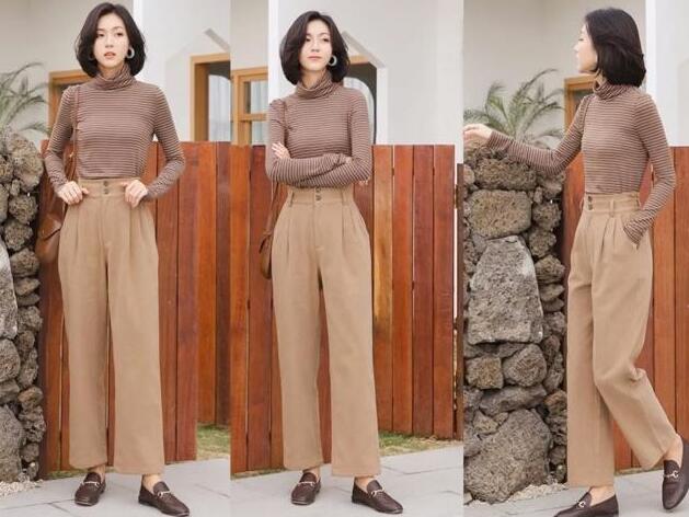 不管是什么样的裤子,棕色的裤子一直都是最受大家欢迎和喜爱的,这款棕色的休闲裤,裤型很直的设计,时尚个性,腰带双扣子设计,美观时髦,结合阔腿的设计,包容性特强,可以遮掩腿部的肉肉,不挑身材穿,还很气场感,搭配一双枣红乐福鞋非常好看时髦,太显气质了。?女休闲裤配什么鞋子好看