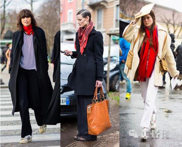 ▲红色的确是一个明亮鲜艳的颜色,给人热情奔放的感觉,而红色围巾作为配饰,就算是低调内敛的小仙女也是OK的,给整体搭配起到一个点亮作用,觉得全身深色的搭配太过沉闷?一抹红色就可以轻易化解。