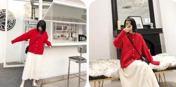 红色开衫搭配什么裙子?