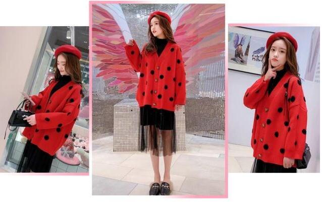 搭配1、对于爱美的女生来说,出街当然就是要美美哒造型,一点都不可以马虎得了,而春天流行穿红色的开衫,就要入手咯,带有黑色波点的设计,会看起来更加俏皮可爱一些的,搭配针织网纱连衣裙,很百搭却还有仙女feel,这个春天就应该这么穿!