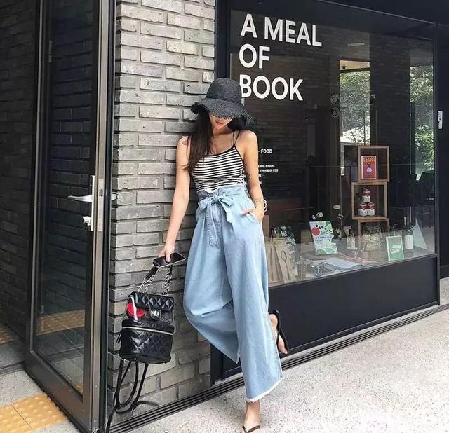 阔腿直筒裤修饰腿型的能力是一流的,而且对于屁股比较大的女生来说,阔腿裤因为版型上的优势会非常的显瘦。绝对是有胯宽问题的女生衣柜里必备的一条声控。