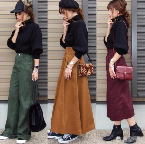 又或者采用“上松下紧”的搭配方法,但这种方式适合裙子,比如迷笛直筒长裙搭配宽松的毛衣,将毛衣小小的一部分塞进裙子了,用后半部分这种胯部,梨型身材怎么穿衣搭配图片裙子修饰腿型,达到显瘦的效果。