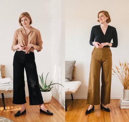 在裤装上,梨形身材可以选择高腰的直筒裤、阔腿裤,烟管裤、或者高腰的伞裙、A字裙等,都能很好的起到掩盖缺点的作用,还能修饰身形。
