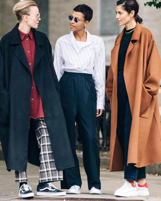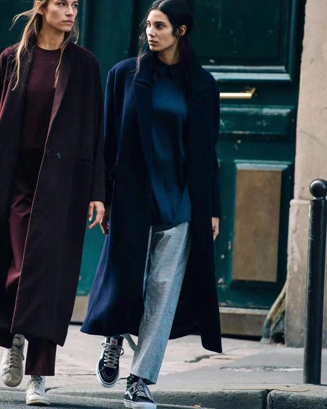 大衣的颜色都是纯色的格调,而且配色也都是比较深的颜色。令人向往的酒红色、优雅庄重的藏青色都是比较显出高级感的颜色。大衣的版型也都是非常的宽松版型,没有那么刻板,看起来非常的舒适,不紧绷。不同于那些休闲的韩系风格大衣,颜色单一不华丽,突出的是很浓厚的时尚和优雅气质。宽松的直筒裤,也能更好的体现出穿搭的时尚感。